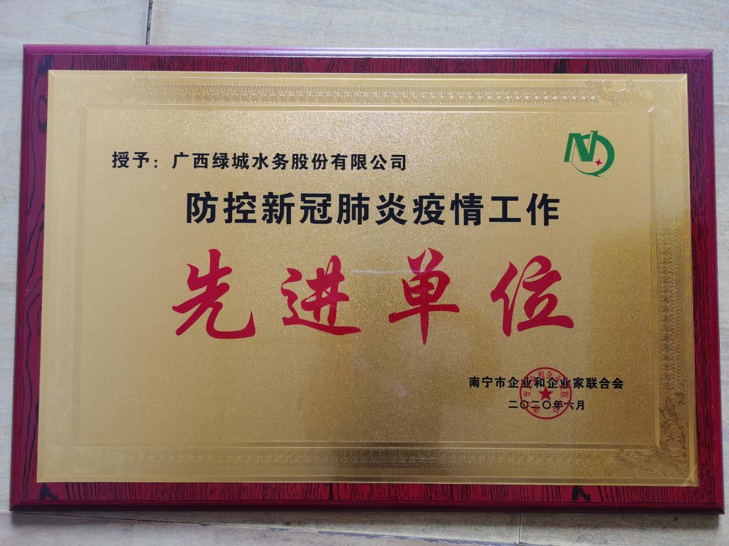近日,南寧市企業(yè)和企業(yè)家聯(lián)合會(huì)舉辦“防控新冠肺炎疫情工作暨經(jīng)驗(yàn)交流會(huì)”,對(duì)在防控新冠肺炎疫情中做出貢獻(xiàn)的單位進(jìn)行表彰,綠城水務(wù)榮獲“防控新冠疫情工作先進(jìn)單位”榮譽(yù)稱號(hào)。