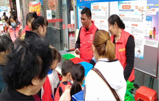 圖為河南水廠黨支部黨員志愿者正在耐心指導社區居民識別垃圾分類