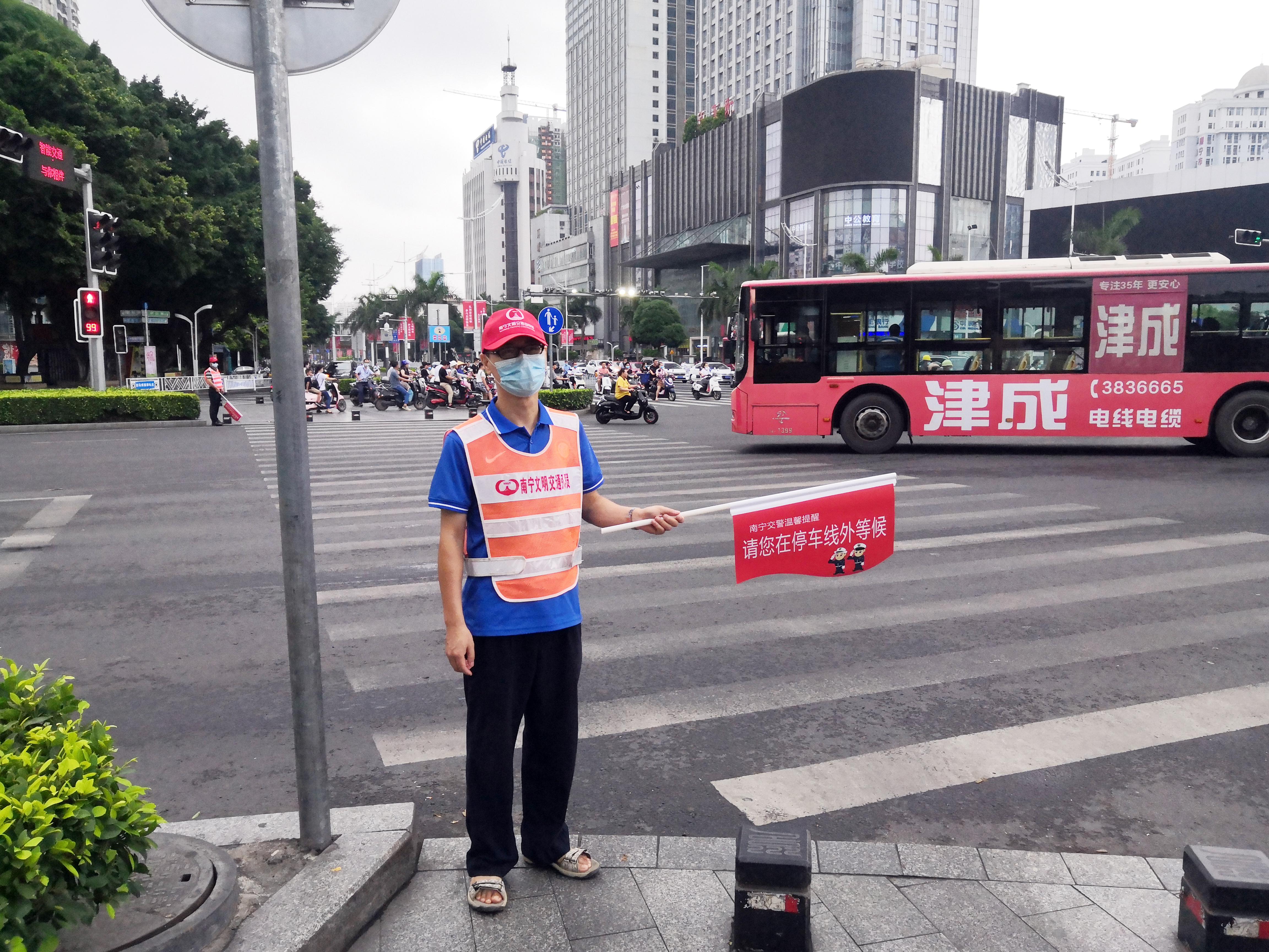 近期,公司中心調(diào)度室、陳村水廠、西郊水廠、江南污水處理廠的志愿者們出現(xiàn)在南寧市交通繁華的交通路口,早上七點(diǎn)半,志愿者們就紛紛提前到崗,接受交警的崗前培訓(xùn)。活動(dòng)中,炎炎烈日下,他們一絲不茍認(rèn)真履行工作職責(zé),對(duì)闖紅燈、逆行、走快車道等交通違法行為的非機(jī)動(dòng)車駕駛?cè)诉M(jìn)行勸阻、提醒市民文明交通禮讓,同時(shí)耐心解答市民詢問(wèn)、協(xié)助老幼病殘?jiān)械忍厥庑腥税踩^(guò)馬路,攜手路口交警一起文明有序的出行環(huán)境。當(dāng)天太陽(yáng)雖然很大,當(dāng)志愿者們絲毫沒(méi)有退縮,炎炎烈日下映紅的臉頰是城市街頭最美的那一抹“紅”。