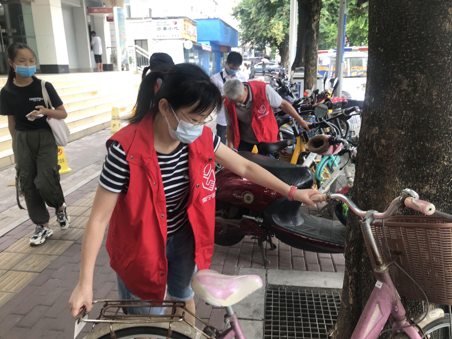 共享單車為居民提供了便利,唱響了綠色出行的理念,然而亂停亂放、隨意毀壞等現(xiàn)象接踵而來(lái),成了靚麗風(fēng)景線上一抹不文明的色彩。青秀區(qū)津頭路口周邊都是老舊小區(qū),道路狹窄,交通擁擠,共享單車隨便擺放的問(wèn)題比較嚴(yán)重。凌鐵水廠的志愿者們充分發(fā)揚(yáng)了不怕臟、不怕累、不怕苦的工作作風(fēng),在青秀區(qū)街頭開展“”共享單車隨手扶志愿活動(dòng)”,對(duì)主干道出現(xiàn)共享單車扎堆、占道、歪倒的情況,他們會(huì)將車扶好,排放整齊,而對(duì)于一些零散停放的車,他們便集中搬到一個(gè)地方排好。