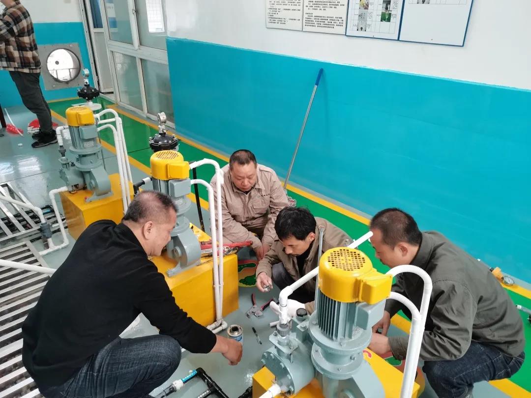 圖為營業處二次供水管理班“水精靈”黨員先鋒示范隊在重點保障點檢查二次供水設備運行情況